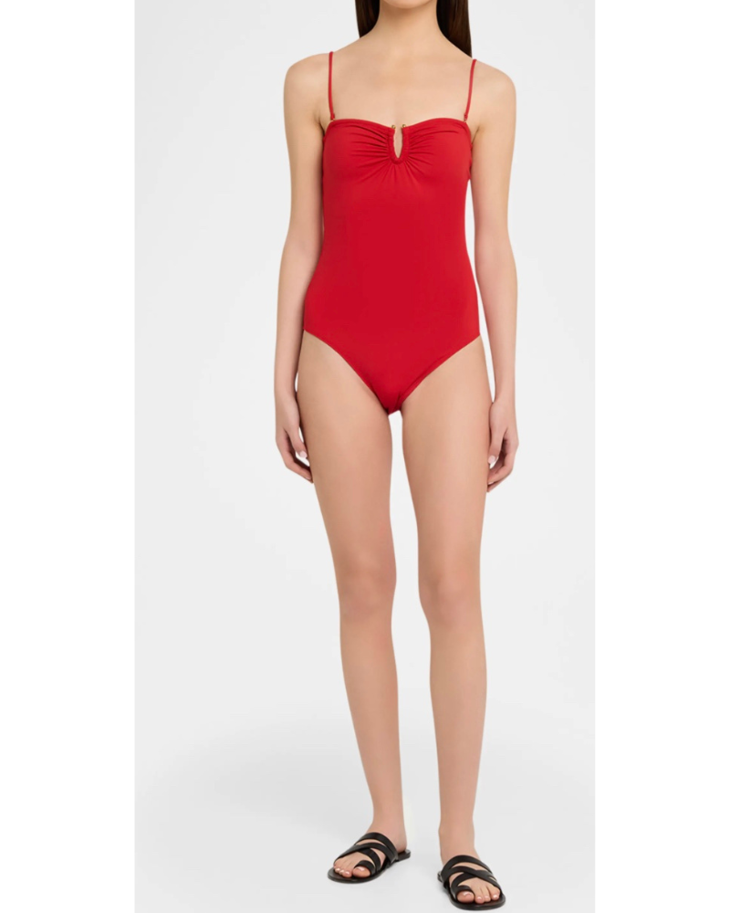 - Nili Lotan one-piece swimsuit features a ruched central U-ring hardware