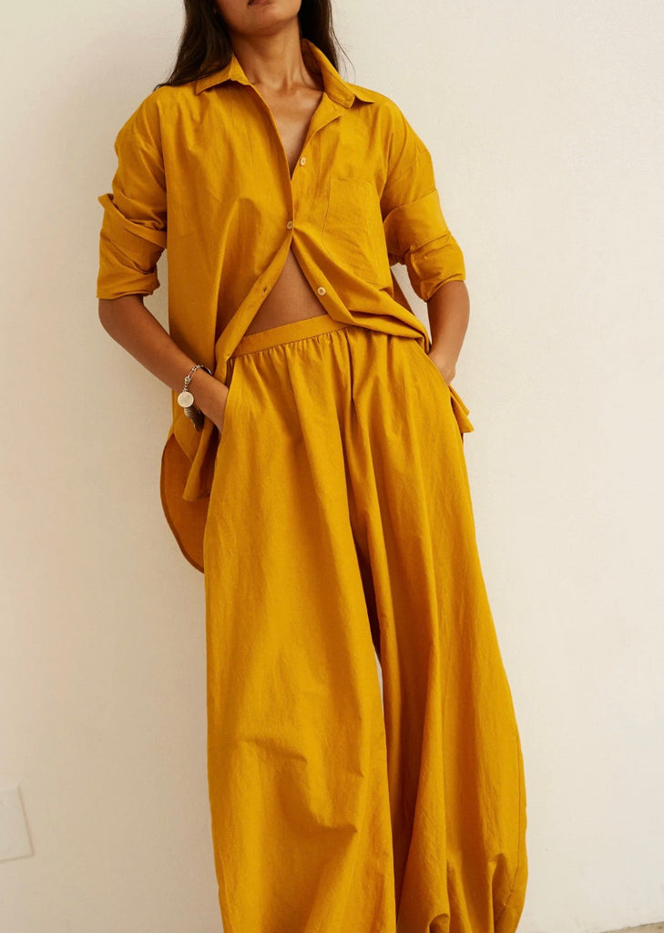 A relaxed fit and expertly cut shirt that exudes beautiful drape. Fabric that expresses ease and structure. A perfectly placed button at the chest allows for a deep plunging neckline. Tailored in Silk Cotton.