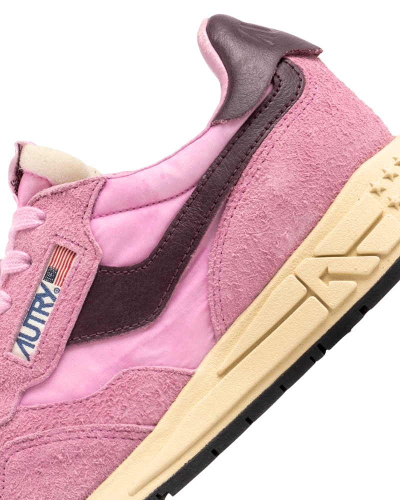 This version creates original color-block combinations, adding a bold twist to any look. The women's style is crafted from a mix of washed pink suede and nylon, with side panels in brown leather.