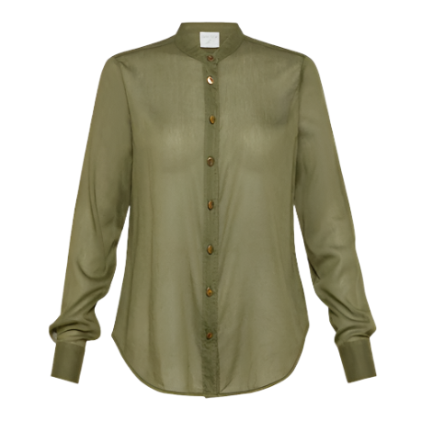 Co/Se Voile Collar Shirt Sculpture Buttons, Olive
