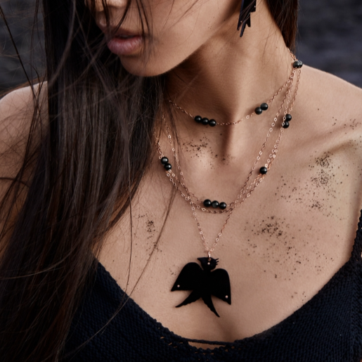 18 karat rose gold necklace and onyx, 17