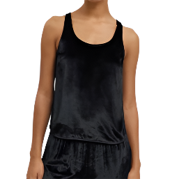Velvet tank top, scoop neck, relaxed fit, and hand-painted screenprint in velvet and silk stretch charmeuse.