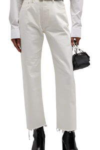 - MOUSSY VINTAGE "Robco" wide-leg jeans with a frayed hem in white denim