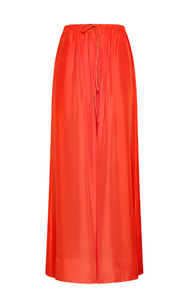 the colours of the morning dew, an oyster's sheen or poppy petals douse the trousers in habotai silk with a sweeping effect. the waistline fastening with a vegan–leather drawstring evokes a mellow mood, making this a perfect separate or some exquisite loungers for easy–chic situations. the leg that falls loose to the ground means that these silk trousers strike an ideal balance between a skirt and some jogging pants.