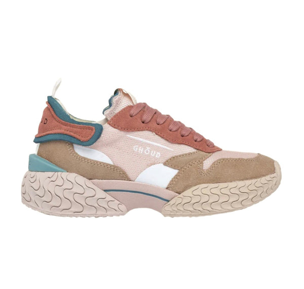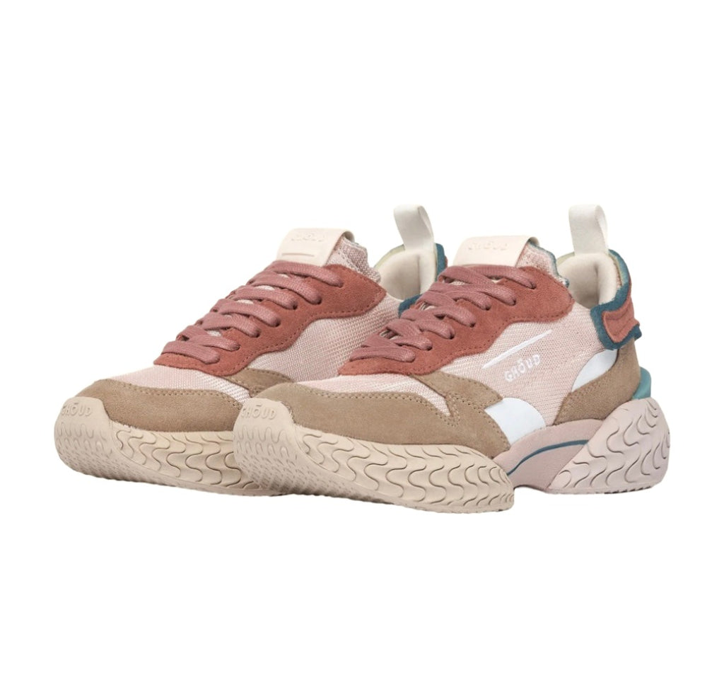 The aesthetics of Ghōud's Tire Sneakers pay tribute to the Venice Lagoon. Multi-layer mesh and suede upper with thermo-welded details recalling its distinctive contours. Leather heel with a thin foam rubber overlay. Iconic embroidery logo at side.