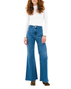 A clean, full-length flare with a polished silhouette. The Wooster features a high rise, slim fit through the hips, and dramatic flare from the knee down. Designed with a wide waistband for a retro look and made from soft Japanese stretch denim that holds its shape beautifully.